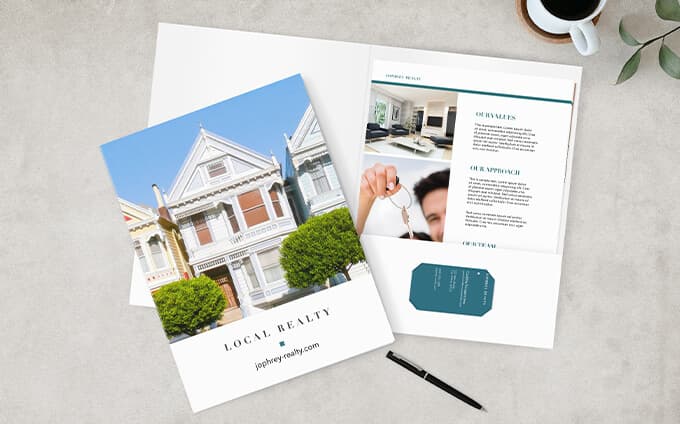 · Stay organized and on-brand with custom folders and matching business cards.